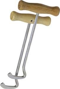 These boot hooks are constructed of a steel hook with wooden grip handles.