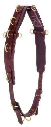 An absolute complete surcingle. Made of quality heavy leather with rings and dees correctly positioned for attaching reins, rope checks, crupper and other training aids. Adjustable girth for equal pressure. Excellent solid brass hardware.