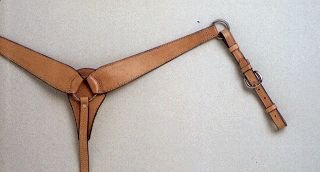 For work or pleasure this comfortable breast collar is doubled and stitched of quality saddle leather for extra durability. Tapers from 2 3/4" to 1 1/4. Smoothed edges and a heavy steel center ring.