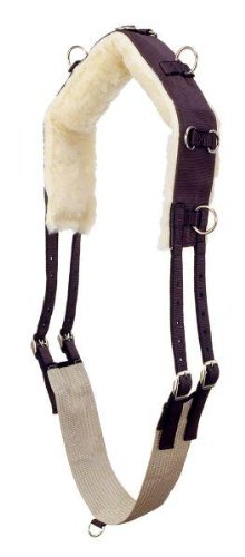 Heavy duty training surcingle with 4" wide back of acrylic sheepskin, rings and dees located properly for training the horse. Get results with this professionally engineered surcingle that is fully adjustable and designed with the trainer in mind. Adjusts from approximately 62 to 78 inches