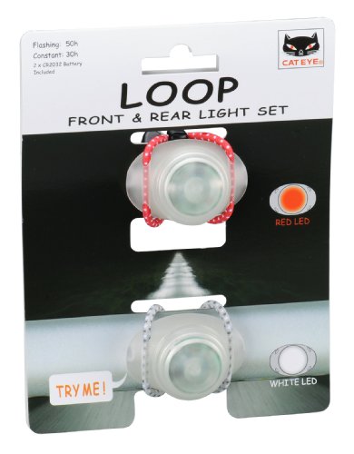 Safety light design comes full circle with this pair of CatEye Loops, the latest innovation in front and rear bike illumination. Each LED light--which attaches to almost any part of your bike via the go-anywhere elastic mount--is uniquely designed to throw light in nearly all directions for added visibility. No more feeling vulnerable on city streets because your bike isn't catching the eye of passing motorists. The elastic mount, meanwhile, lets you customize your gear and quickly change configurations depending on which light orientation keeps your bike the safest. Other features include simple pushbutton operation, powerful constant and flashing modes, and front and rear styles in white and red.